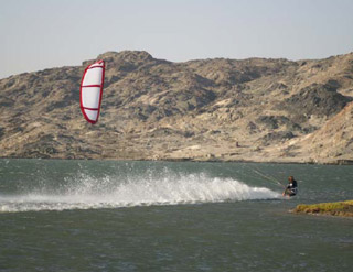 27 Sept 07. Press release from the Luderitz Speed Challenge in Namibia Africa. Last week a new Kitespeed World Record was acheived by Alex Caizergues of France, shown at left riding a 6m Bandit on short lines... yeeehaa. On Saturday September 14th, Alex set a new Kitespeed World Record at 44,55 knots over the 500m course in Luderitz. Beating the old record by almost 3 knots. The previous 3 years old record was held by Olaf Marting.