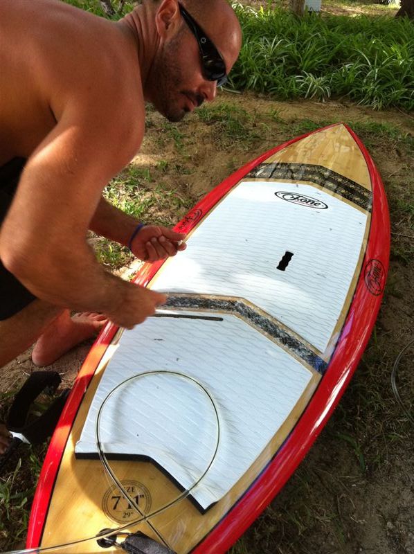 The next morning I tried out all the surfsups, surprised at how stable the Madeiro shortboards were, not surprised at how manouvreable they are. The Madeiro was named after a surfbreak in the wilds of Brazil, long and barreling but great for aerials. Anakao after a hollow dangerous reefbreak in remotest Madagaskar, where speed is everything. There was lots of water moving around out on the reef so I eventually settled in for a 2 hr session on the 9’1x29.5 Anakao thruster in the well overhead rights between chameaux and little reefs. It’s a fair paddle out there, again 9’1 making short work of it compared to 7’7 haha. The Anakao really charges, very aggressive rails and super fast outline with so much bite and drive you just want to go deeper everytime. Raph was on the Madeiro quad and as we traded waves I could see differences like the Anakao taking waves earlier and easier, but the Madeiro getting snappier turns of course. Both boards handled the fast and somewhat bumpy waves no problem, I know the Anakao thruster would generally be easier though. The bevel rails definitely are the go on sups, heaps better for surfing, so much less prone to catch, and keeping stability where its needed. I even made a few (little) floaters which I did not expect to, the boards just sticking to the line and staying steady under me despite lots of whitewater. These boards are going to ruffle a few feathers when they hit our aussie waters, they really step it up bigtime. The F-one paddles too are totally kickass, keeping it simple there is full carbon, or 70% and then adjustable glass all 3 available in either peak thinblade or battle fatblade all with abs edge. The abs edge technology is borrowed from F-one twintip kiteboard range, well proven. A subtle yet effective V in the top wards off any wobble, and transforms every bit of effort into drive. I don’t paddle much so I really appreciated the peak 70%, it was just right lightness, just the right stiffness and just the right blade for mixing it up. Typical of F-one they look top notch too. Using a unique blade to shaft flush connection gets a better weight and transfer of power, also less risk to rails. I got more sessions the next day and could not believe how featherlight the 100% carbon at 500grams felt in my hands, definitely getting one of those. Just got to make up my mind which F-one sup board…. Not easy when they are all so damn prime. Take a look at f-onesup.com Theres no eta date in Oz yet, but I am pushing and if you are keen email@m8kite.com OK.